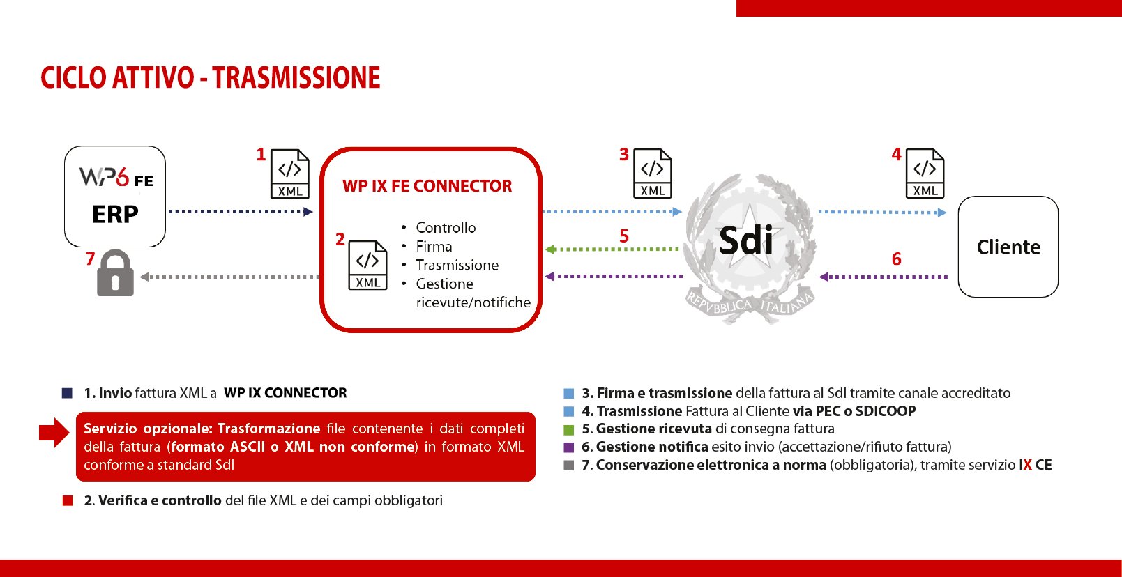 Tramite il connettore WP IX FE, completamente trasparente all’utente, le informazioni elaborate in WP6 saranno condivise in modo bidirezionale con il servizio di intermediazione e conservazione a norma IX FE.